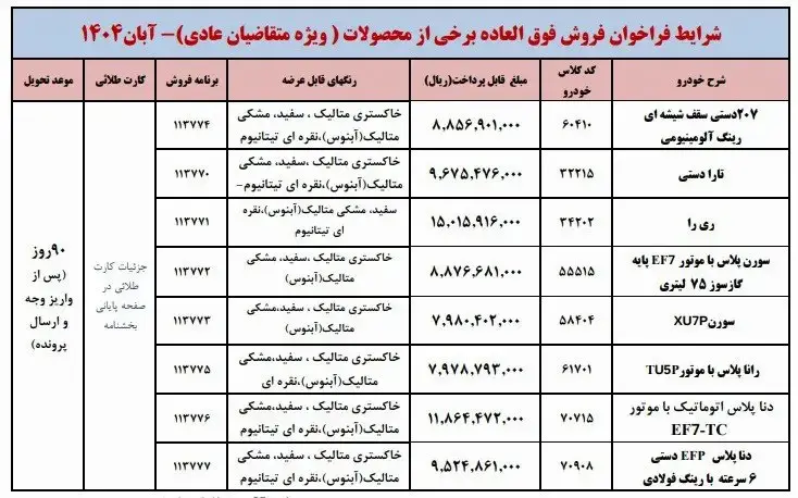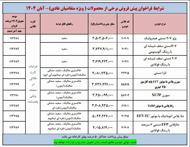 شرایط فروش فوقالعاده و پیش فروش محصولات ایران خودرو در آبان ۱۴۰۴ (ویژه متقاضیان عادی) اعلام شد.