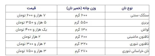 در نیمه مرداد ماه سخنگوی اتحادیه نانوایان سنتی قیمت جدید نان را به این شرح اعلام کرد و گفت: قیمت نان بربری ساده با ۳۱ درصد افزایش به ۴۶۰۰ تومان و تافتون با ۵۲ درصد افزایش به ۲۰۰۰ تومان رسید.