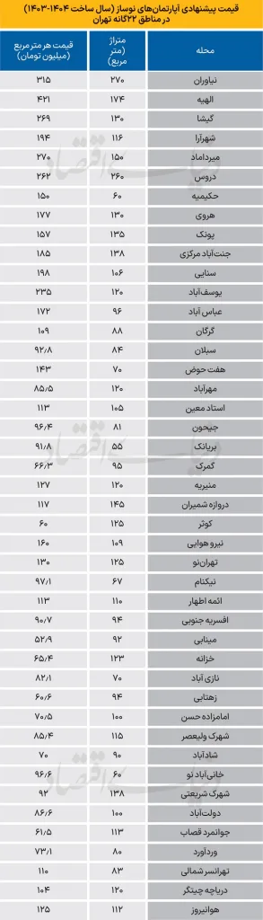 میانگین قیمت پیشنهادی برای آپارتمانهای نوساز ساخت۱۴۰۴ در بازار ۱۵۱.۲میلیون تومان در مترمربع است.